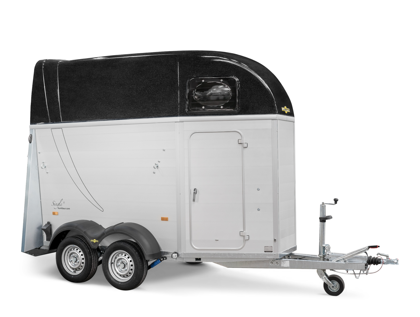 De Humbaur Single Alu is ideaal voor merrie en veulen en voor het dagelijks gebruik. Standaard zijn de trailers uitgevoerd met EquiDrive®-chassis en een rotvrije 21 mm dikke AluBiComp-vloer met 8 mm rubbermat, verlijmd en afgekit. De trailers hebben doorlopende borststangen met panieksluiting in lengte en hoogte verstelbaar. Tevens zijn alle trailers voorzien van een ventilerend rollo systeem.